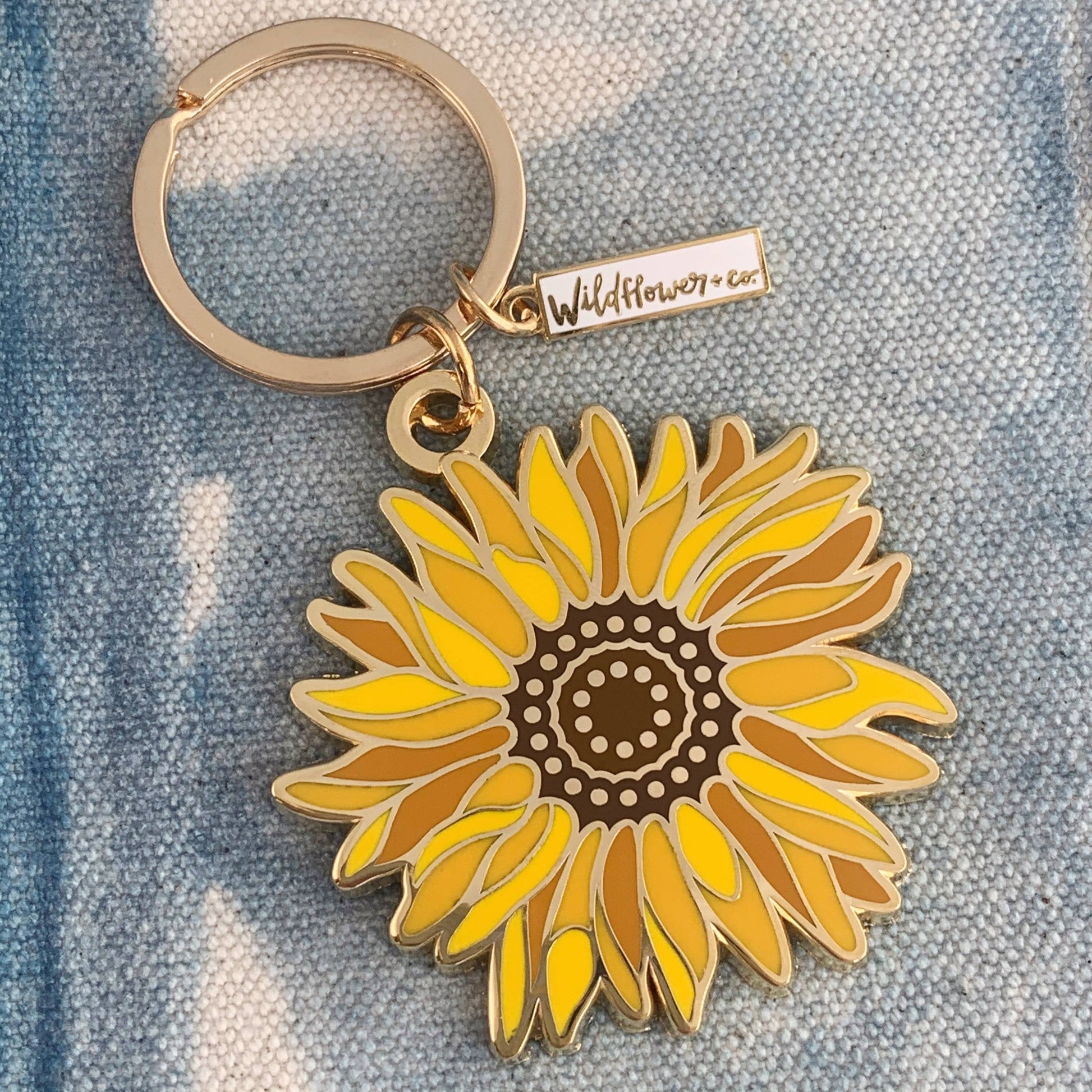 Sunflower hard enamel keychain or key ring in golden yellow & gold adds a boho touch to your keys. Now just imagine yourself daydreaming in a field full of sunflowers…!